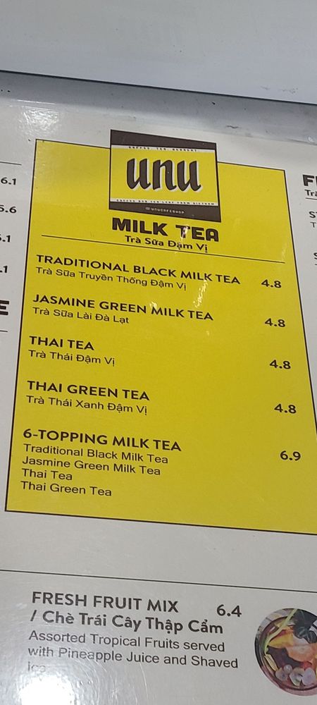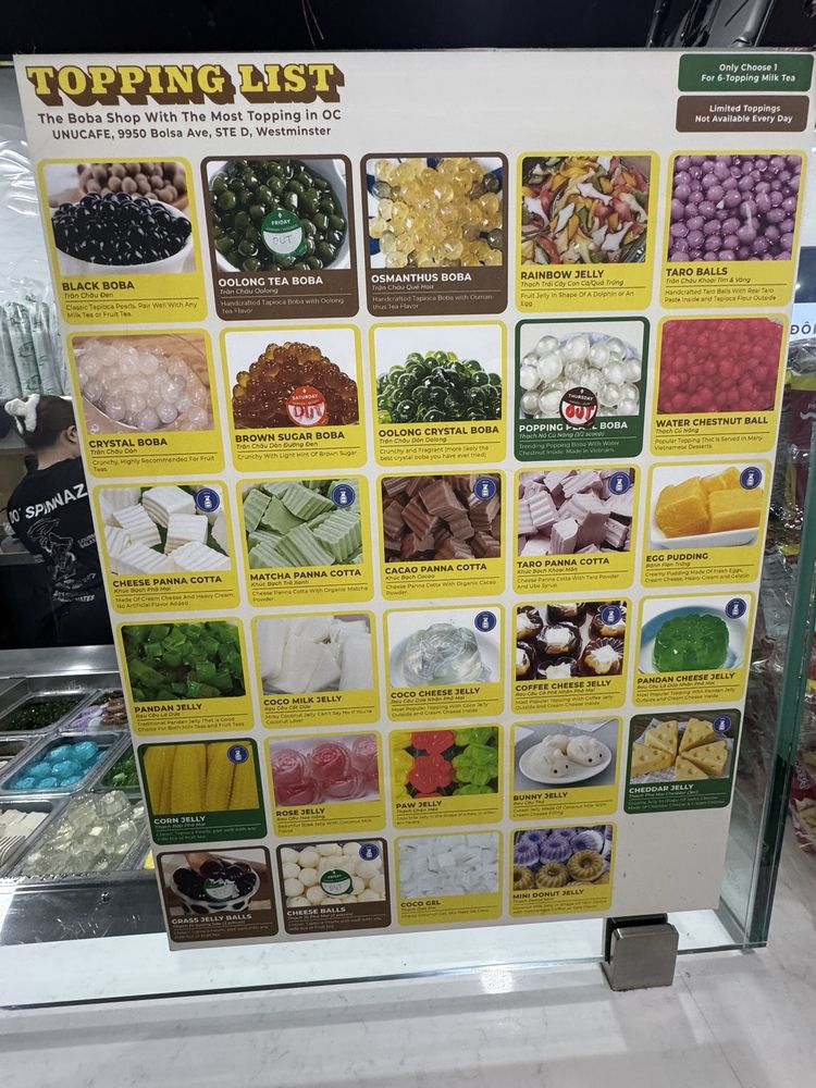 Unu Cafe, located in Westminster, CA, offers a unique experience with its 6-topping drinks and variety of base options including jasmine milk tea and thai green tea. The cafe stands out with its extensive list of toppings, ranging from classic black boba to pandan jelly and taro balls. Customers rave about the fresh fruit flavors in the drinks, such as mangosteen tea and tamarind tea with salty plum. The shop's cozy atmosphere and friendly staff make it a must-visit spot for bubble tea lovers. With generous portions and affordable prices, Unu Cafe is a hidden gem in Garden Grove where you can indulge in authentic flavors reminiscent of Vietnam. Their selection of Thai desserts and tropical fruit teas adds to the overall experience, making it worth the visit.